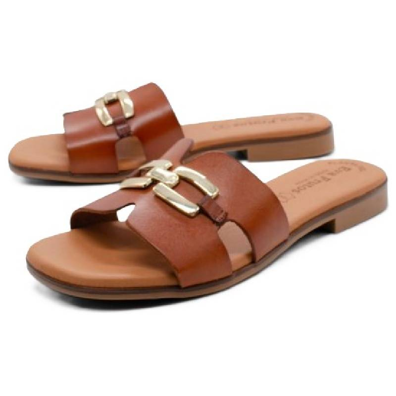 Les reliefs dorés apportent de la lumière qui vient réchauffer encore la couleur marron chaleureuse de la tige en cuir. L’alliance de brides unies et de brides texturées permet de trouver le juste équilibre entre sobriété et fantaisie, pour des sandales féminines faciles à porter en toutes occasions. Le gel à mémoire de forme vous assure en outre une semelle intérieure d’un grand confort.