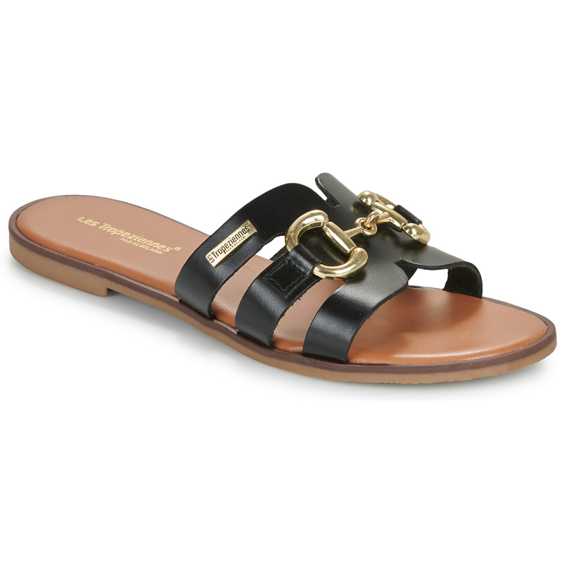 Cuir marron de la semelle et cuir doré de la tige s’allient dans ces mules de la marque Les Tropéziennes pour vous chausser avec qualité, lumière et élégance, avec une claquette qui vous place au cœur de la tendance mode de l’été.